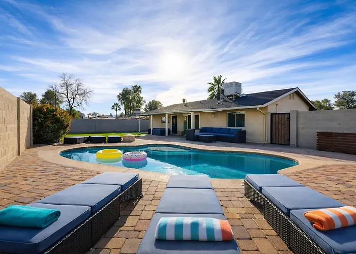 De villa is uitgerust met zelfvoorzienende voorzieningen, waaronder een complete keuken en een eethoek buiten waar gasten van kunnen genieten. Er zijn ook een oven en een vaatwasser om uw eigen maaltijd te bereiden. Raising Cane's, waar een breed scala aan maaltijden wordt geserveerd, ligt op 300 meter afstand. De dichtstbijzijnde luchthaven Phoenix Sky Harbor bevindt zich op 5 km afstand van de woning.